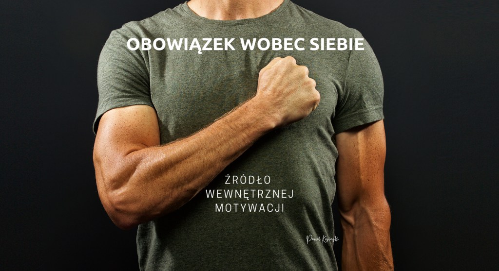 Obowiązek wobec siebie jest, w moim przekonaniu, źródłem wewnętrznej osobistej motywacji. Obowiązek to moje „muszę” a wypełnianie go powiększa wpływ na siebie. Czuję się w obowiązku, wobec samego siebie, świadomie wpływać na zmianę ze stanu nieporządku i nieopanowania w opanowane i uporządkowane, choćby ten proces zmiany trwał długo, traktując go jako trening, musi dawać większą kontrolę i władzę. A to przecież chodzi.